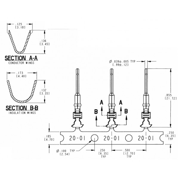 Pin męski Deusch DTM, materiał: CuZn Ni, przewód: przekrój 0.35-1mm2, dł. 30cm - op. 1szt.