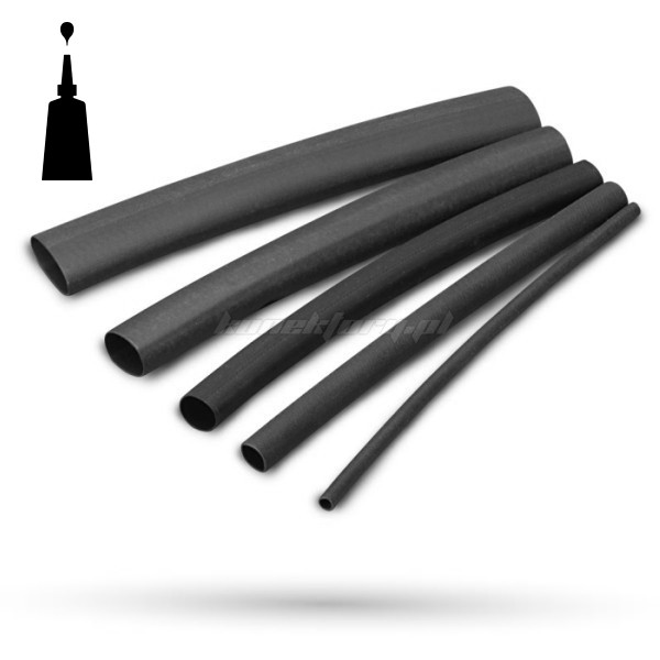 Rurka termokurczliwa z klejem, obkurcz 3:1, śr. wewn. 6mm, kolor: czarny - op. 1 mb.